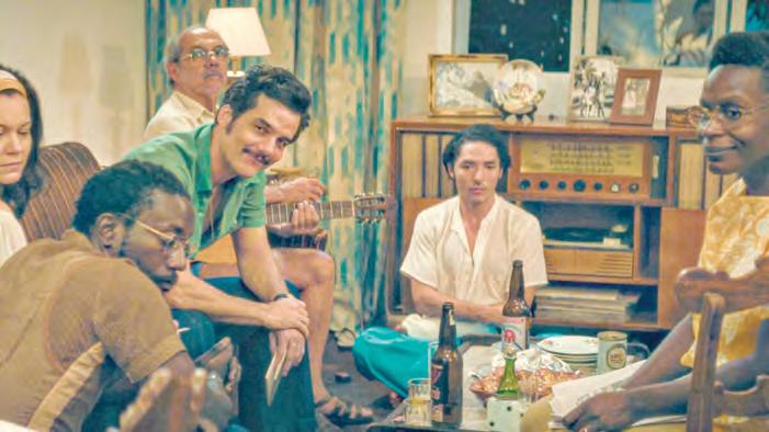 La atmósfera particular de Recife se siente en las escenas de gente bai lando en sus calles durante el carna val. También en la subtrama sobre una “pierna peluda” que, dicen los periódicos, ataca a la gente por las noches. Inspirada en una leyenda urbana local inventada para sortear la censura, aquí aparece como una saga que es seguida con devoción y morbo. Muertes sangrientas coexis ten con una película llena de vida; que encuentra la verdad detrás del estereotipo de que los latinos con vertimos todo en fiesta. Hay un sen tido medio perverso de que, a pesar de todo lo que pasa, la vida sigue y que la gente todavía se divierte. Mucha de la vitalidad y energía de El agente secreto viene igualmen te de su cinefilia: de sus referencias y menciones de otras películas, así como su reverencia por las salas de cine. No es regla que los críticos de cine que hacen el salto a hacer cine, como es el caso de Mendonça Filho, también hacen películas sobre otras películas (creo que esto es muy cierto, de Jean-Luc Godard, pero no igualmente de François Truffaut). Pero las emociones y experiencias relacionados al cine no pueden separarse fácilmente de la trama de El agente secreto. Al mismo tiempo que es una película sobre la dictadura brasileña, su corazón también está en ese niño que quiere ver Tiburón porque el póster le provoca miedo y fascinación en dosis iguales. En esa