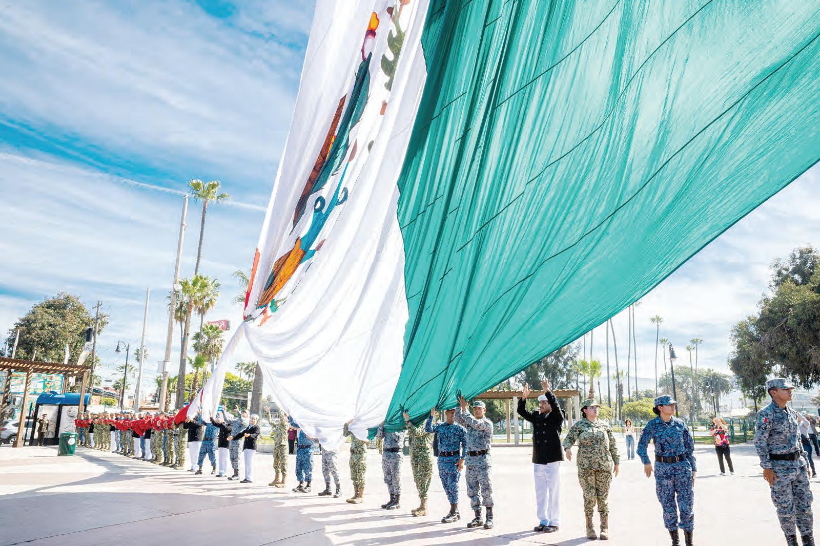 Dentro de la conmemoración del Día de la Bandera se abanderaron 12 escoltas escolares y de asociaciones civiles de este municipio, además se realizó el izamiento del lábaro monumental