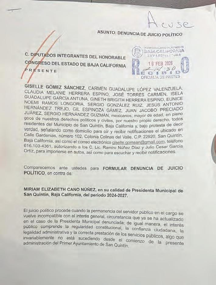 PIDEN MANIFESTANTES DE SQ JUICIO POLÍTICO CONTRA MIRIAM CANO