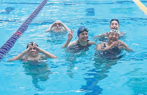 “Llegué por terapia después de una lesión y ahora no puedo imaginar mi semana sin nadar”, comparte María Elena Torres, de 62 años, quien entrena cuatro veces por semana. “He recupera-
