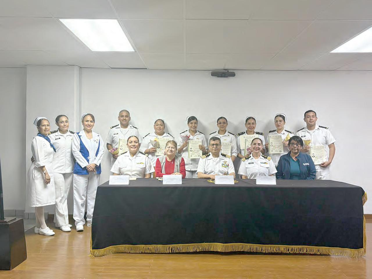 Un total de 16 enfermeros y enfermeras de la Armada de México fueron reconocidos sus capacidades y conocimientos en el área de sanidad