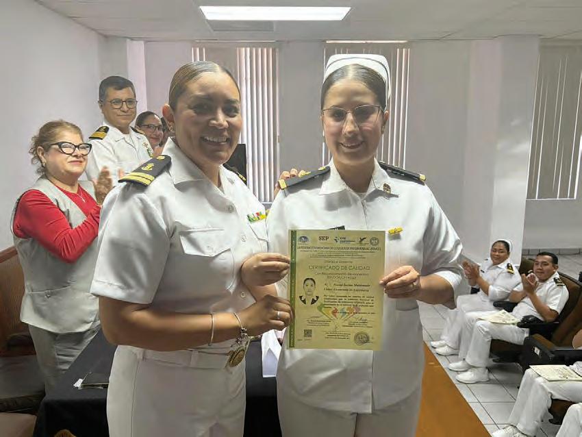 gios de Enfermería con la en trega del certificado. El personal de sanidad naval, adscrito al Hospital Naval de Ensenada, obtuvo dicho distintivo por alcanzar los criterios de calidad establecidos por la Comisión Nacional de Certificación de Enfermería (Conace).
