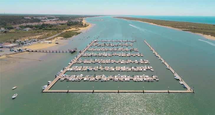 Este puerto es de bajo calado, ya que se encuentra en el Paraje Natural de las Marismas del Río Piedras.