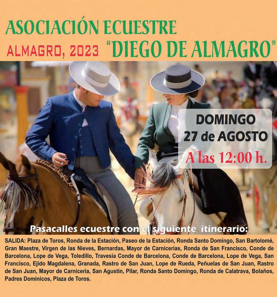 12:00 h: Pasacalles ecuestre, organizado por la asociación ecuestre ‘Diego de Almagro’. Lugar de salida y llegada: Plaza de Toros.