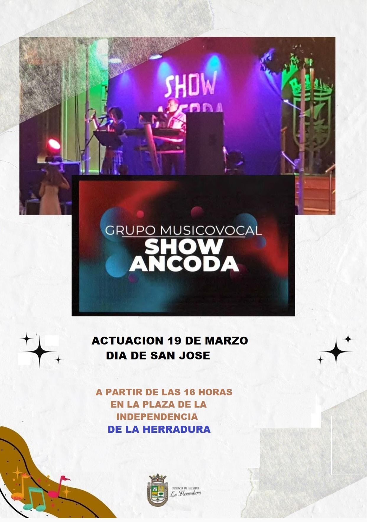 v 13:30 h. Convivencia con una paella Popular en La Caseta Oficial de Fiestas en la Plaza de la Independencia para despedir nuestras fiestas patronales juntos. Amenizada por el grupo musicovocal “SHOW ANCODA”.