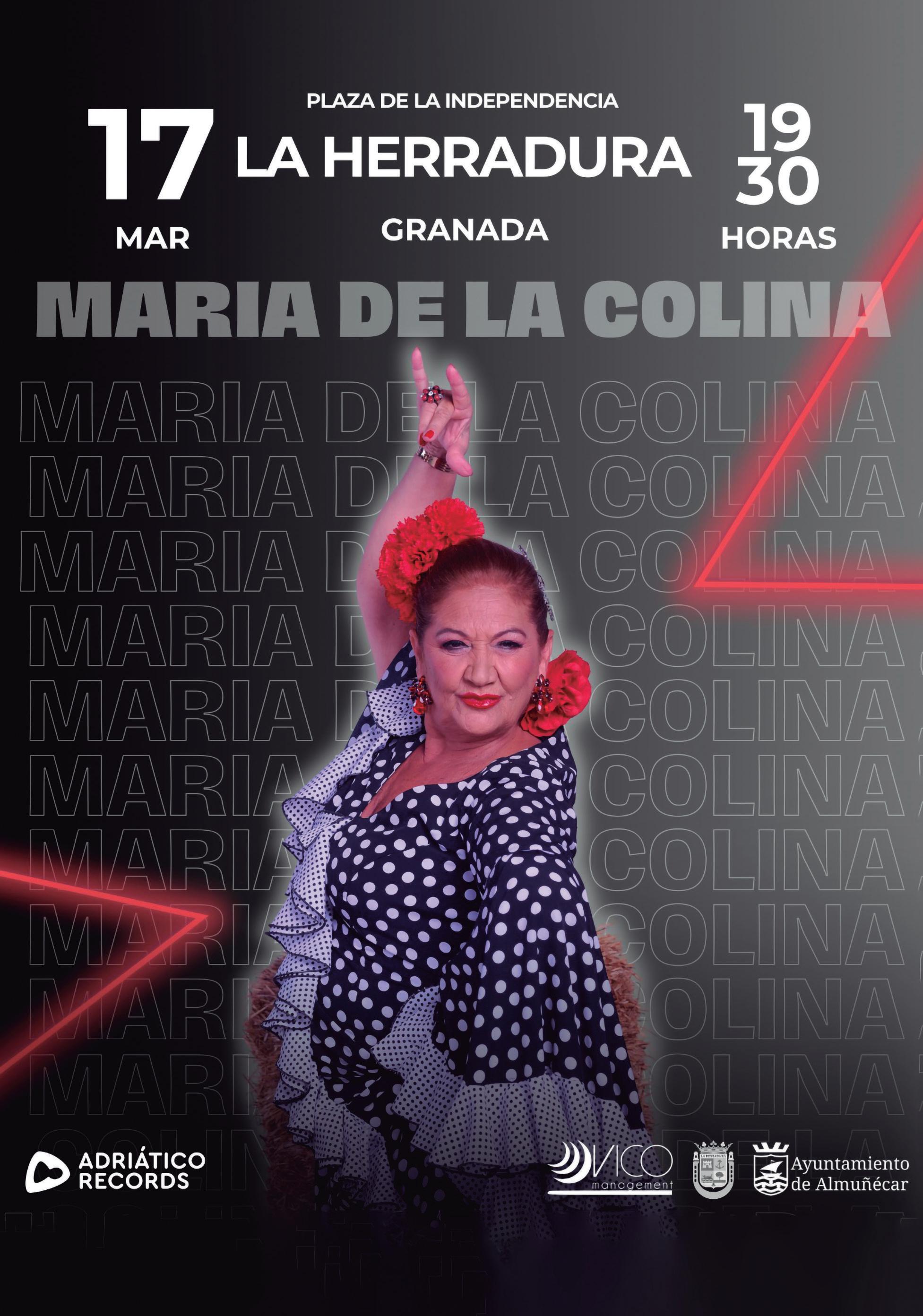 v 19:30 h. MARÍA DE LA COLINA en concierto. Caseta Oficial de fiestas, en la Plaza de la Independencia.