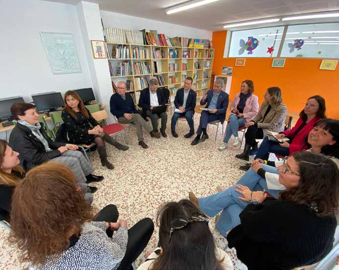 La reunió amb les direccions, a la biblioteca de l’Escola Sinera, va ser un profitós intercanvi d’informació de l’activitat del Departament d’Educació i el dia a dia de l’escola. Els aspectes organitzatius dels equips de personal i les seves substitucions i també del calendari i l’inici de curs i els models relacionats amb la jornada intensiva.