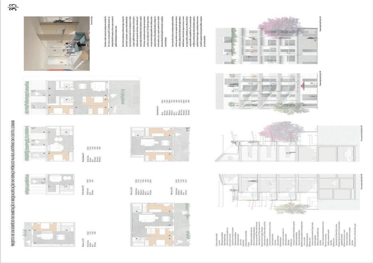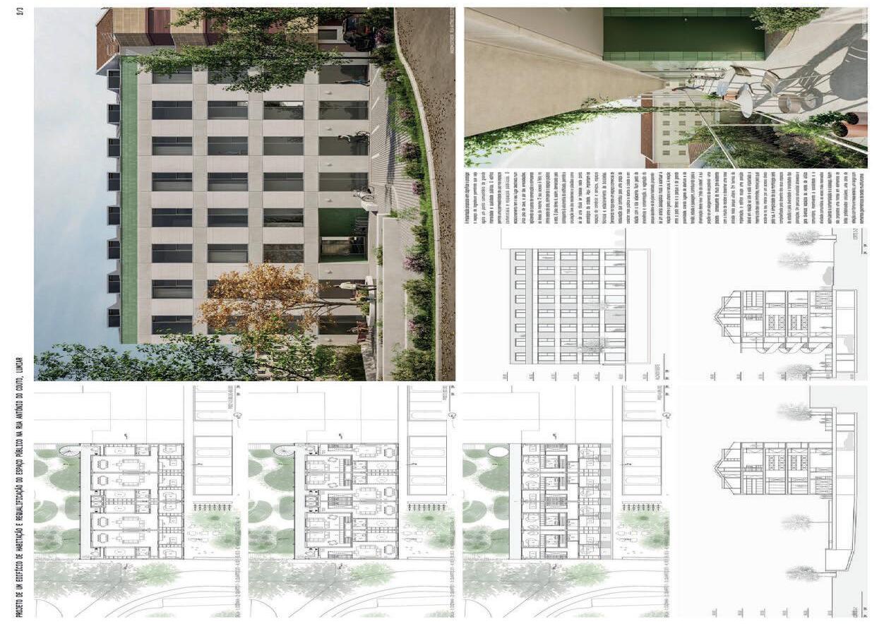 O Júri valorizou o fato do piso térreo se encontrar dedicado aos espaços comunitários e utilitários de uso comum, estimulando a criação de laços de vizinhança e hábitos de convivência social que o programa do concurso pretende incentivar. Considera-se igualmente positivo o desenho do átrio de uso polivalente e a permeabilidade visual e física estabelecida entre o logradouro e a Rua António do Couto.