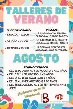 - 8 a 10 años: del 31 de julio al 4 de agosto y del 21 al 25 de agosto.