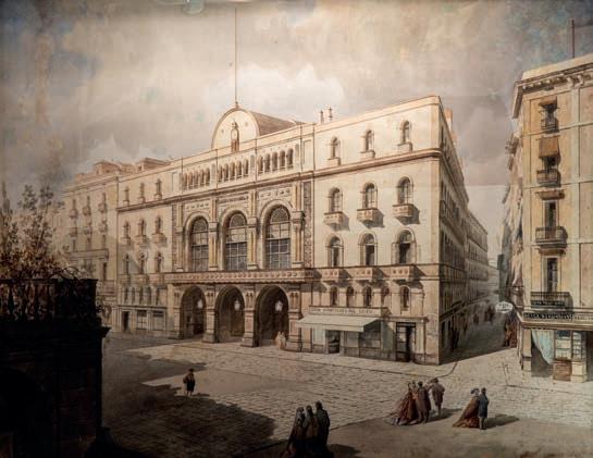 Reconocido por sus vistas urbanas, en 1877 fundó la Escuela de Perspectiva, Acuarela y Aguatinta. Esta vista del Teatro del Liceo es una obra ejecutada a la acuarela sobre papel y fechada posiblemente en 1867, aunque la grafía del último dígito es confusa. Así pues, se trata de una vista del edificio después de su reconstrucción tras el devastador incendio que tuvo lugar en la primavera de 1861.