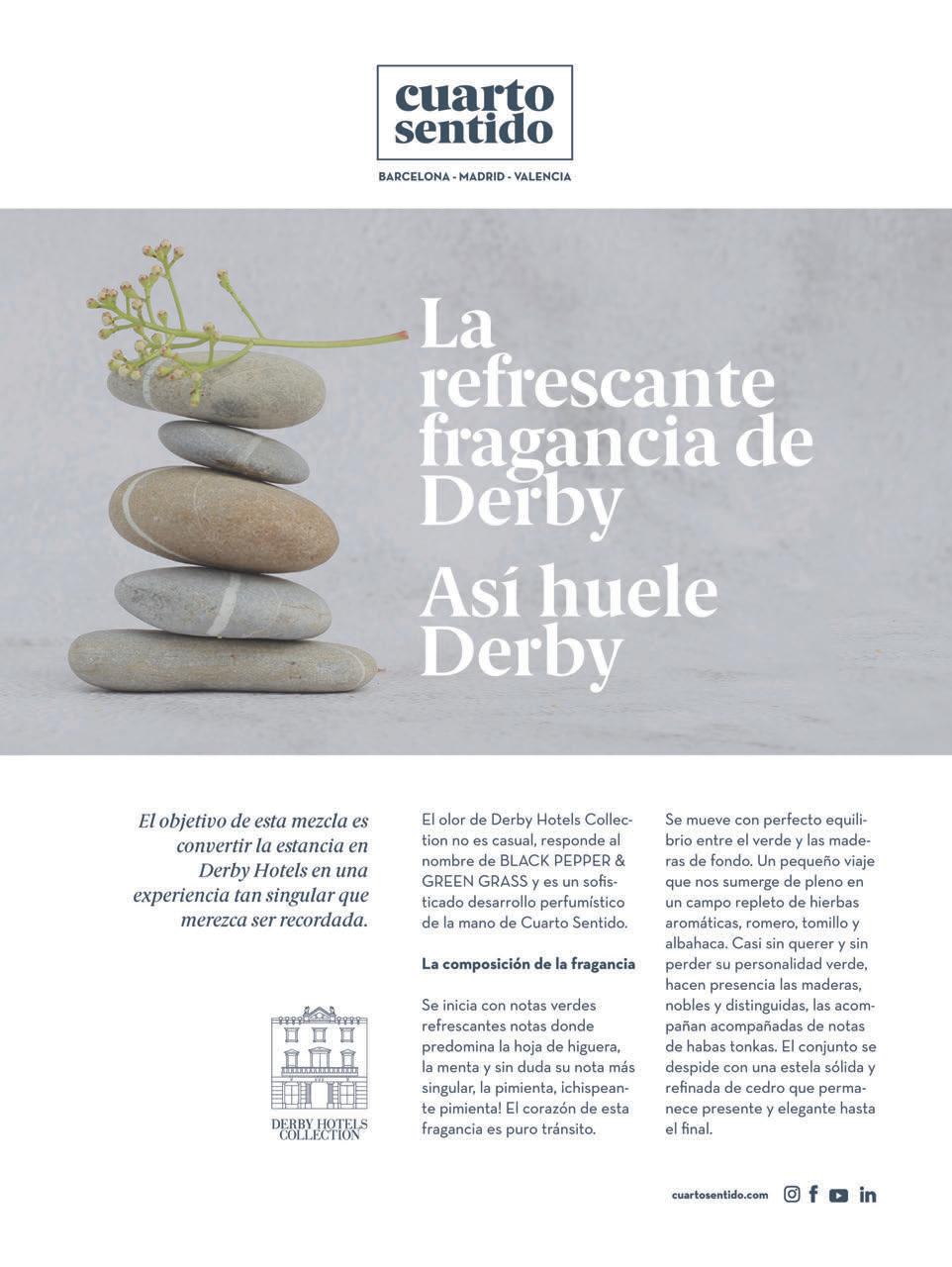 Derby Hotels Collection Valencia, 284. 08007 Barcelona Tel. +34 934 452 500 | Fax +34 933 668 811 www.derbyhotels.com Producción: Revista de Derby Hotels Collection Nº 26, año 2023 8 RESTAURANTE CEBO 60 EL CHILLOUT SE INSTALA EN CASA 40 BARCELONA 66 UN DETALLE QUE LO CAMBIA TODO 56 PARIS 44 MADRID 34 OS-KURO 64 SE LLEVA LO NATURAL 50 LONDRES 30 GLASS BY SIPS 62 EL DEPORTE QUE TE CAMBIARÁ LA MENTE 72 MONGOLIA 76 ISLANDIA 68 NIKOLA TESLA 16 MEET EGYPT 22 200 AÑOS DESCIFRANDO
