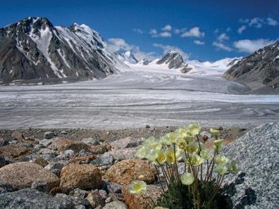 Few wild places possess such an impressive force as the Altai Tavan Bogd National Park. Its 200 km length serves as a natural border between China, Kazakhstan, Russia and Mongolia. Huge snowcapped mountains and several glaciers fill the lakes along the park with water, which in turn provide the flow of the Hovd River, one of the most important rivers in the country.