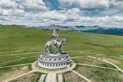 A 54 km de Ulán Bator nos encontraremos la gigantesca estatua esculpida en honor al gran padre conquistador de Mongolia, Genghis Khan. Alzada sobre un enorme pedestal, la estatua, hecha de acero en su totalidad, alcanza 40 metros de altura y 250 toneladas de peso, convirtiéndose así, en la estatua ecuestre más grande del mundo.