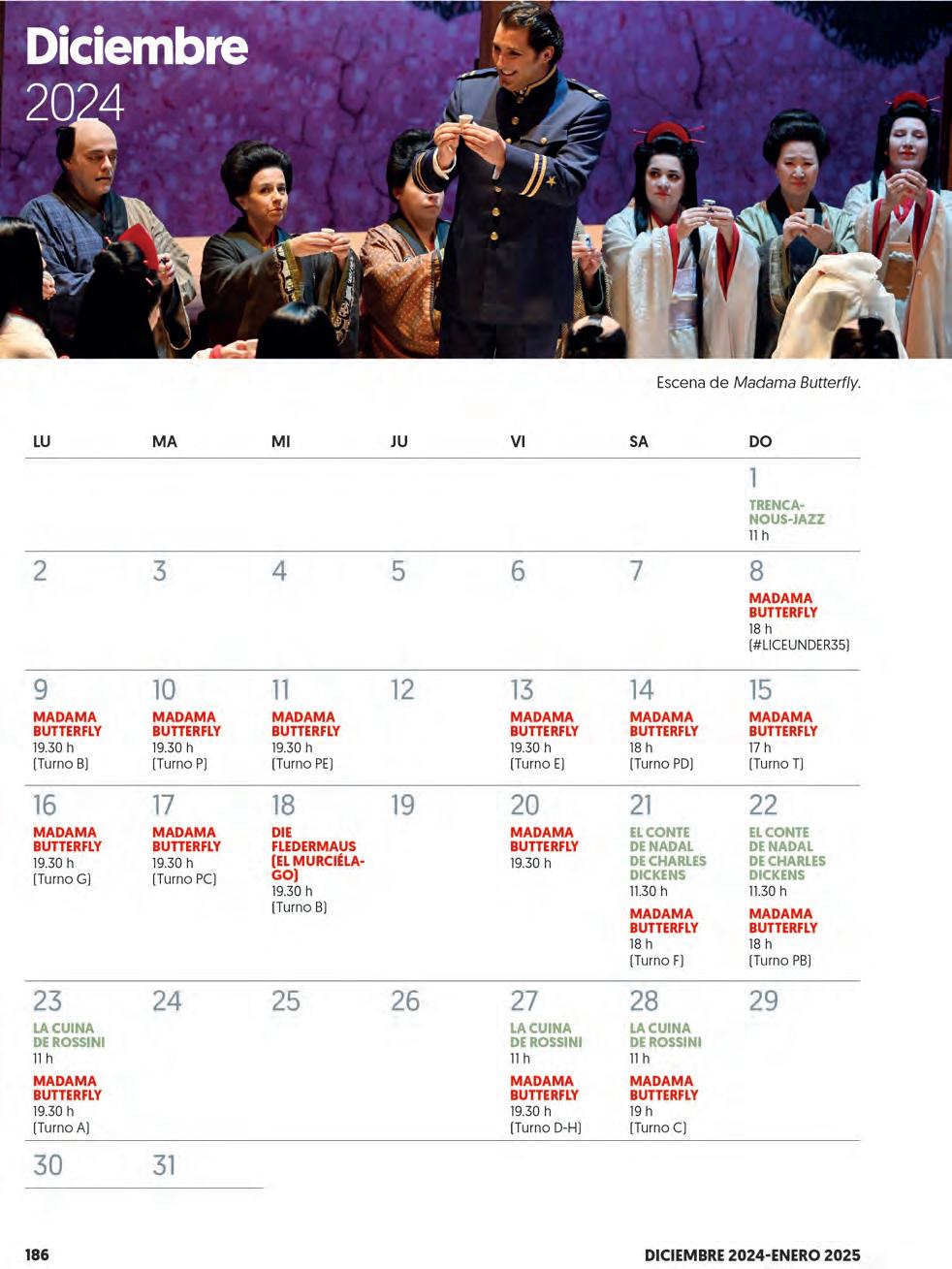 Excepto los días en los que hay representación del calendario oficial del Gran Teatre del Liceu, el club abrirá una hora antes de la función y cerrará sus puertas una vez haya finalizado. Agosto. Cerrado al público por trabajos de mantenimiento.
