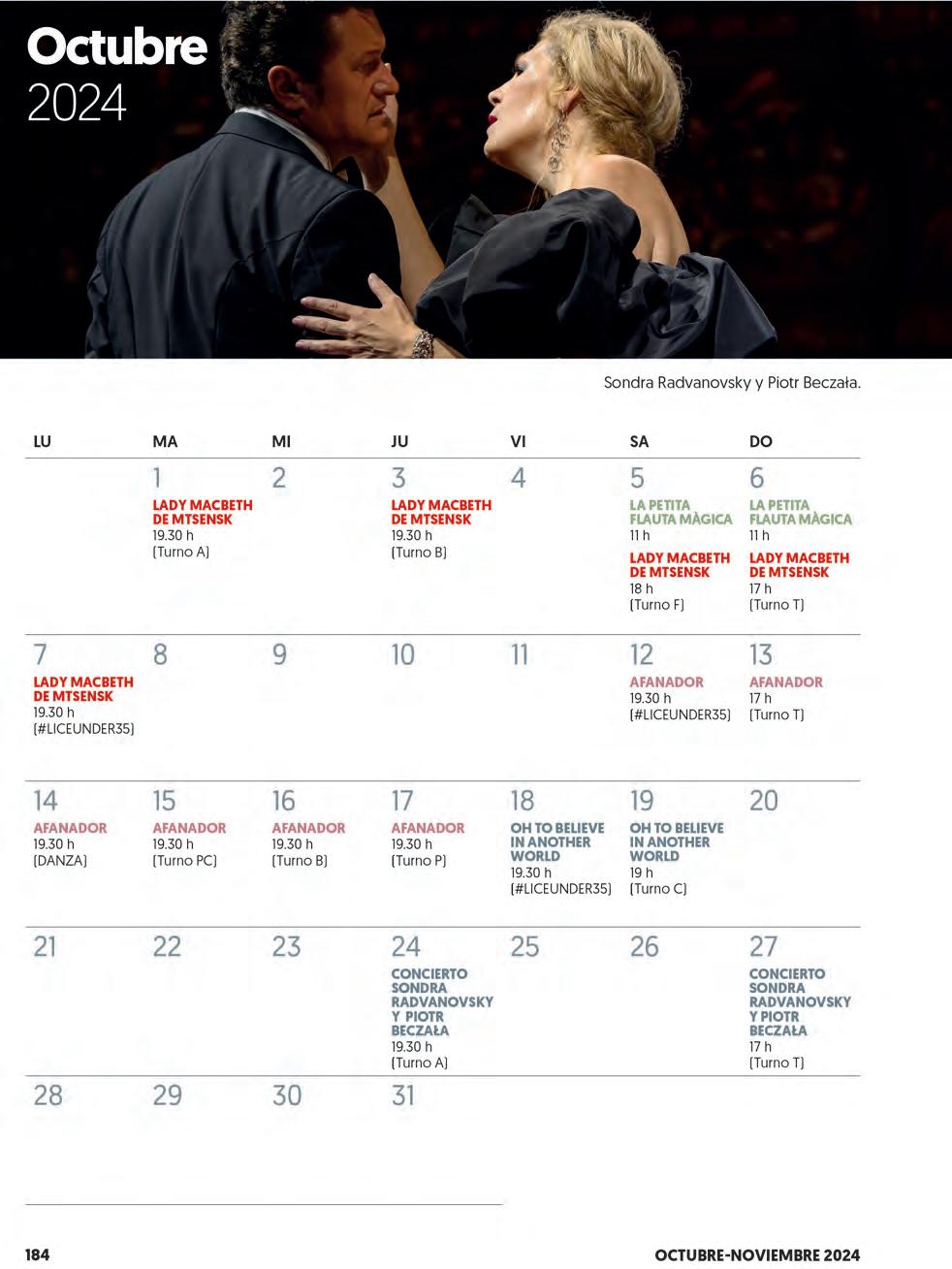 Dos nombres españoles para cerrar el desfile: Saioa Hernández (1979), soprano lírico spinto de hermosos reflejos, de resonancias bien ajustadas, que en esta temporada vestirá los ropajes de Leonora de Forza del destino y de Butterfly, y la intensa Ángeles Blancas (1965), que se meterá en la piel de Katerina Ismailova de Shostakovich.