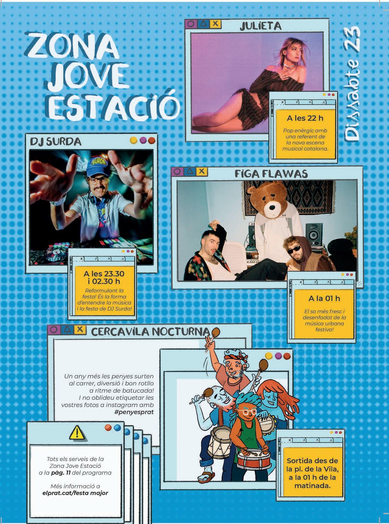 Reivindiquem cultura com la que fa el pregoner d’aquest 2023, el fotoperiodista David Airob, amb les seves fantàstiques instantànies, a través de les quals en els darrers anys ha reflectit la intensa vida pratenca amb amor i estima per la nostra ciutat. I reivindiquem cultura com la de la pratenca Laia Ruz , a través de les seves il·lustracions, que enguany ens brinda el cartell de la Festa Major.