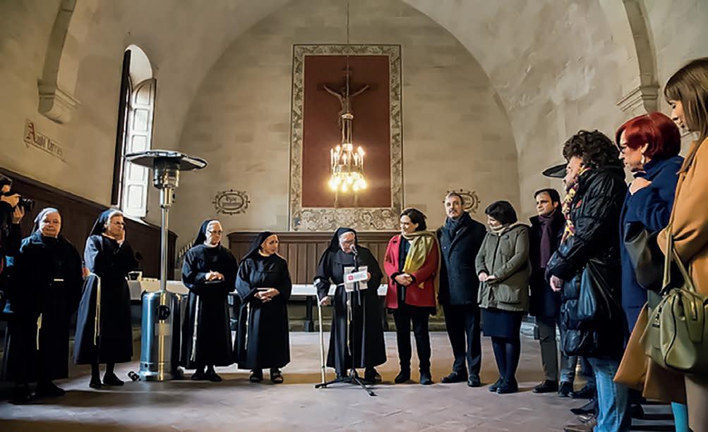 Tras el periodo navideño, acudimos el día de Santa Eulalia, el 12 de febrero, a visitar a la comunidad de monjas clarisas que oran y viven en el Monasterio de Santa María de Pedralbes. Es una tradición muy asentada que ese día los concejales del ayuntamiento de Barcelona, con su alcalde a la cabeza visiten a las monjas clarisas. Tras el canto del Goigs de Santa Eulalia y el Virolai, las monjas aprovechan para desearnos paz, serenidad y bienestar a todos los barceloneses. También se explican los proyectos de restauración y mejora que ha llevado a cabo el ayuntamiento en el curso pasado. Este año fue la primera visita de Jaume Collboni como alcalde y pudimos departir con él y los demás concejales, explicándoles los trabajos que hemos llevado a cabo como asociación para documentar la elaboración del Mató de Pedralbes por parte de la comunidad clarisa.