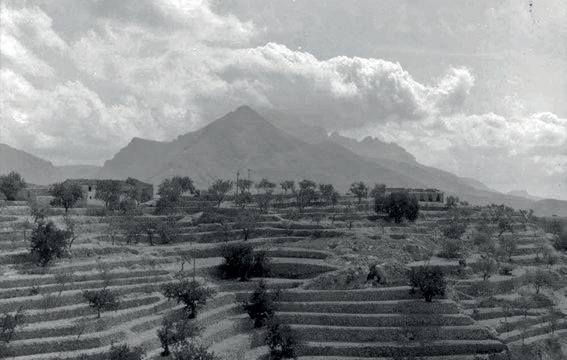 Foto 6: Els bancals de la fam, amb conreu de secà, a Callosa d’en Sarriá, construïts a finals del XIX. La foto és dels anys 30 del segle passat, presa per Otto Wunderlich.