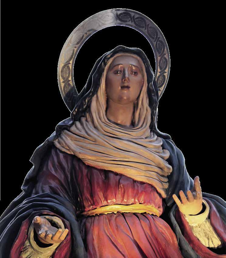 En su sede tenía un altar propio donde veneraba la imagen de una Dolorosa, que no era si no la Soledad a imagen y semejanza de la que mandara tallar la reina Isabel de Valois a Gaspar de Becerra, y cuyo semblante envuelto en hábitos de viuda castellana movió a la devoción en medio mundo.
