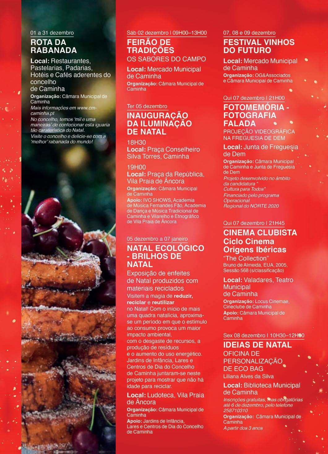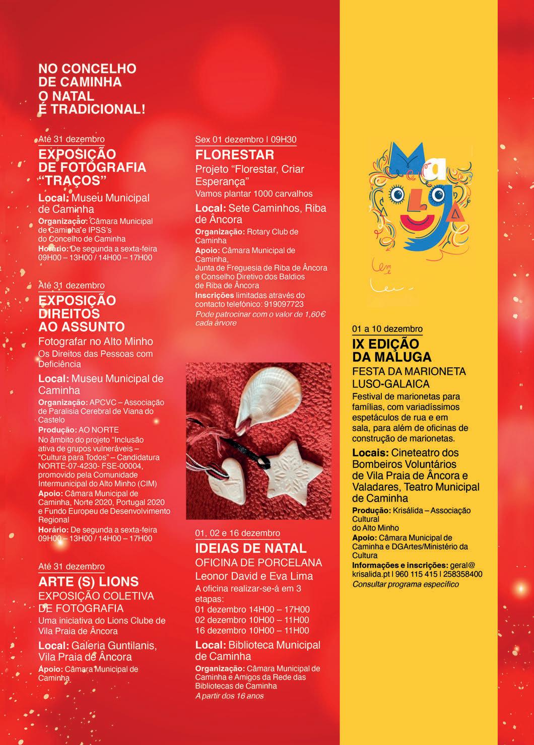 RL – Achamos que seria uma forma de aglutinar os eventos e iniciativas e de integrar áreas que às vezes estão dispersas ou que acabam por não ter a visibilidade que merecem. Este mês de dezembro, enfim, não havia grande discussão, é o mês do Natal. Mas já foi possível destacar e desenvolver muitas temáticas. Deixe-me recordar: começámos com Março – Mês do Ambiente e da Sustentabilidade; depois AbrilMês da saúde e do Bem-Estar; Maio – Mês do Mar, dos Rios e da Pesca; Junho – Mês do Desporto; Julho – Mês do Turismo; Agosto - Mês das Festas e das Romarias; Setembro – Mês das Tradições e da Cultura Popular; Outubro – Mês Sénior e Novembro – Mês da Cultura: dos Livros ao Património.