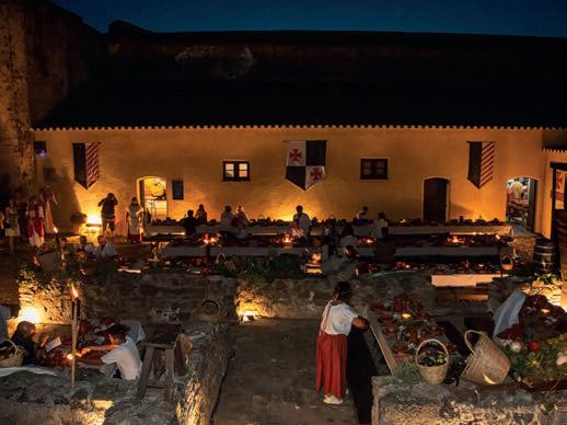 Outro dos grandes destaques dos Dias Medievais em Castro Marim são os banquetes, que decorrem num espaço exclusivo e à luz misteriosa das tochas, com uma ementa que reúne as melhores iguarias da época, acompanhadas de performances de grupos de animação.