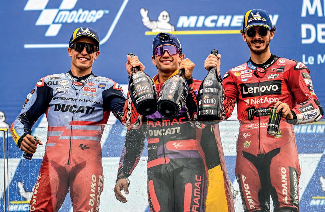 A new name in Ducati’s roster promises to upset the applecart. Marc Marquez’s sensational decision to leave Honda for the first time in eleven years in favour of Gresini Ducati has already seen him back fighting among the leading names, and he scored a brilliant second place at Jerez. Enea Bastianini has also showed he has recaptured his very best form with a fine second place at Round 2.