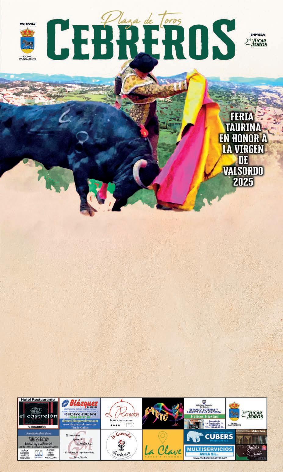 Cebreros se dispone a celebrar las Fiestas en Honor a Nuestra Patrona la Virgen de Valsordo, unas fechas señaladas en el calendario de los cebrereños y las cebrereñas. El nuestro es un pueblo de hombres y mujeres que acogen a todos los que nos visitan creando un ambiente en el que todos participan y se implican en la celebración. Estas Fiestas tienen como referencia la devoción a la Virgen de Valsordo, una celebración religiosa, con procesión, subasta de los banzos y misa mayor, pero más allá del contenido religioso, la mayoría de los que vivimos en Cebreros, por encima de las respetables y diversas creencias religiosas que tengamos, incluso aquellos que no las tienen, respetan la figura de Nuestra Patrona que no deja de ser una referencia de unión de la gente de Cebreros. La segunda gran referencia es la Feria Taurina, con los festejos mayores y los festejos populares, encabezados por nuestros tradicionales encierros. Todo ello se acompaña de un amplio programa, donde destacan las orquestas situadas en la Plaza de España. Pero las Fiestas son el colofón a unos días previos con una gran cantidad de actos deportivos, culturales y de entretenimiento que acontecen a lo largo de todo el verano.