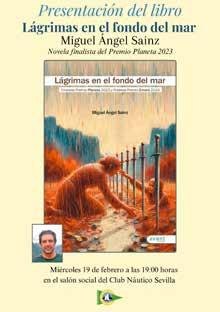 El miércoles 19 de febrero, el Club Náutico era escenario de la presentación de la tercera novela del escritor sevillano Miguel Ángel Sainz (Sevilla, 1973). Licenciado en Arte Dramático por la ESAD y graduado en Derecho por la Universidad de Sevilla, con ‘Lágrimas en el fondo del mar’ ha recibido varios reconocimientos, siendo finalista del Premio Planeta 2023.