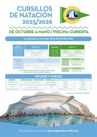 Al margen de los cursillos de verano, el Club Náutico ofrece a sus socios la opción de realizar cursillos mensuales de natación de octubre a mayo para todas las edades y niveles. Las inscripciones deben realizarse a través del Área de socios web, habilitándose lista de espera en el caso de que se agoten las plazas para cubrir posibles vacantes. Más información y contacto: deporte@nauticosevilla.com