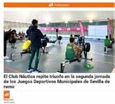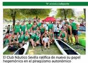 portivo de Sevilla, galardón que no sólo supone un reconocimiento a los resultados deportivos obtenidos, sino también a los valores que representamos como club. Recibir este premio nos impulsa a seguir creciendo, no perdiendo nunca nuestra identidad, que ha hecho grande con su deporte al Club Náutico Sevilla.