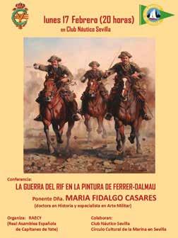 La programación cultural se reanudaba el lunes 17 de febrero con la conferencia impartida por la doctora en Historia y especialista en Arte Militar María Fidalgo Casares. El acto, con entrada libre hasta completar aforo, fue organizado por la Real Asamblea de Capitanes de Yate en colaboración con el Círculo Cultural de la Marina en Sevilla.