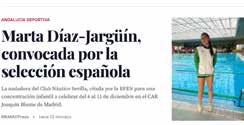 • Marta Díaz-Jargüín: c ampeona de España alevín en 100 y 200 libres, subcampeona de en 50 mariposa y mejor nadadora alevín del Campeonato de España, además de campeona de España absoluta y femenina con la selección andaluza alevín con triunfos en 50 libres y espalda, un segundo puesto en 100 libres, un cuarto en 200 libres, ganando los relevos 4×100 libres y 4×100 estilos y siendo segunda en el 4×200 libres.