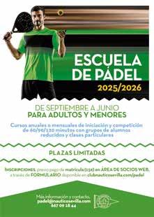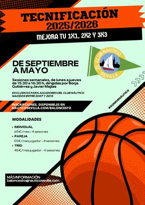 De septiembre a mayo, se celebran sesiones de entrenamientos exclusivas para jugadores del Náutico nacidos entre 2007 y 2015 programadas de 15:30 a 16:30 h de lunes a jueves. Inscripciones, por orden de reserva en nauticosevilla.com/ baloncesto, habilitándose lista de espera en el caso de que se agoten las plazas para cubrir posibles vacantes.