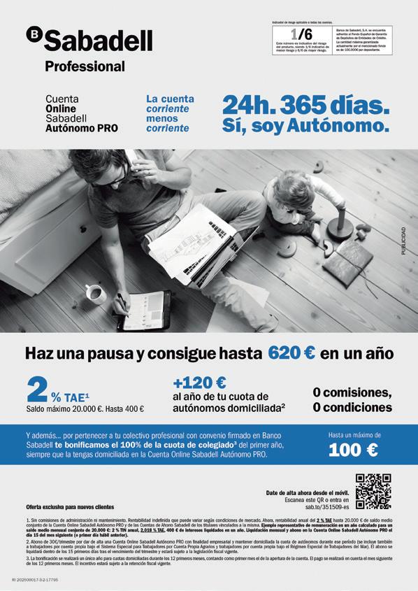CONVENIO CON BANCO SABADELL: Entidad financiera con más de 30 años trabajando con Administradores de Fincas,y más de 300.000 cuentas de comunidades a nivel nacional. Trabaja para mejorar su propuesta de valor para los administradores de fincas y sus comunidades. En este convenio, Banco Sabadell incluye soluciones personalizadas para Comunidades y Colegiados. Este año amplía sus beneficios para nuevos clientes del catálogo de cuentas incluidas en el convenio, con la Cuenta Online Sabadell Autónomos PRO y Cuenta Online Sabadell PRO.