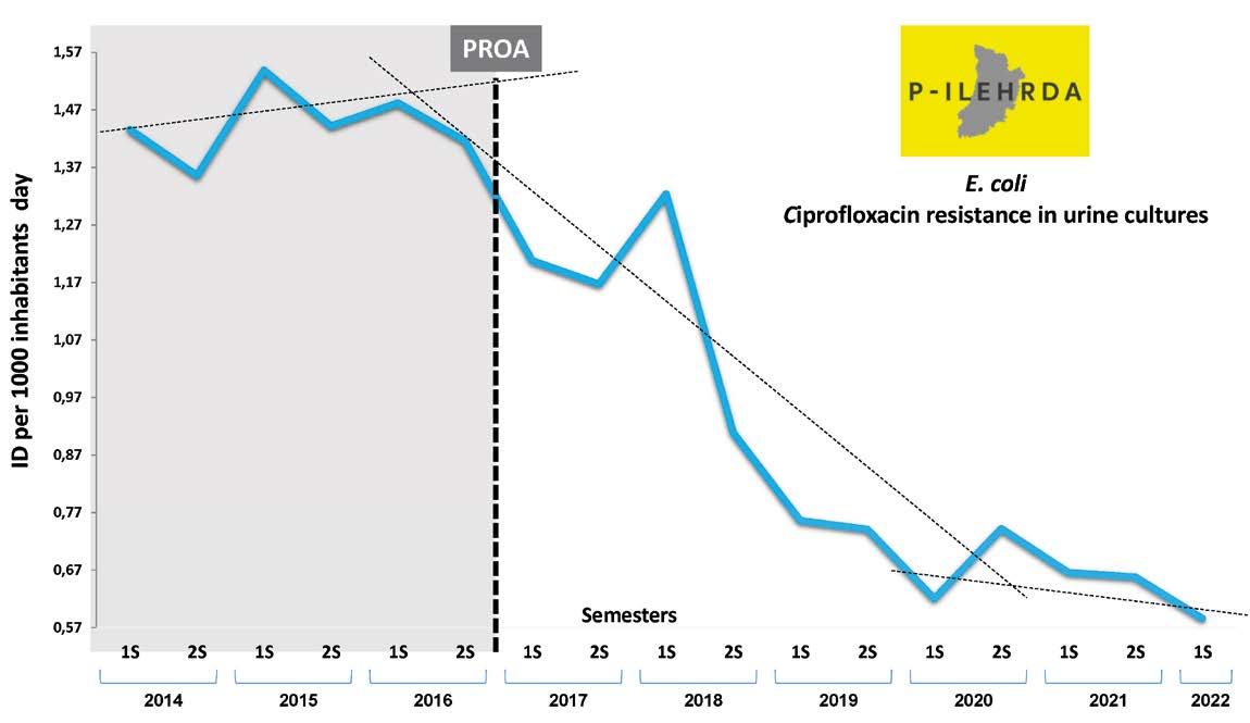 El reto de este ejercicio constante y creciente desempeñado por multitud de profesionales adeptos, ha conllevado, tras sus primeros 10 años de vigencia, que Lleida se encuentre en las cifras históricas más bajas de prescripción de las que se tiene constancia y una de las mejores a nivel autonómico y nacional. Este logro ha proporcionado la recuperación exponencial en las sensibilidades de la mayoría de las bacterias más comunes de nuestro entorno, proporcionando un futuro certero y prometedor terapéutico envidiable. Ambos aspectos se muestran en las figuras adjuntas del texto.