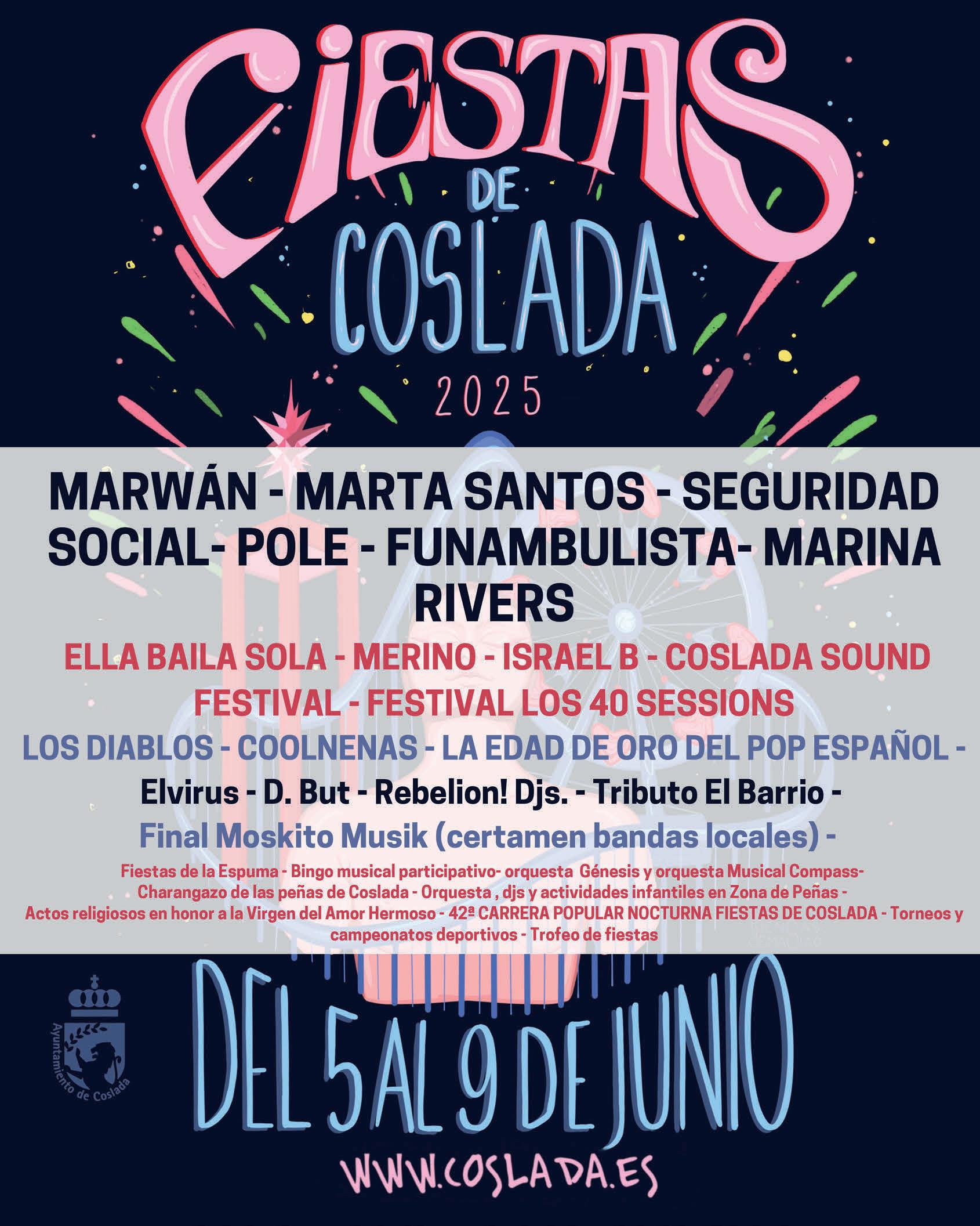 Estas fiestas son, más que nunca, un reflejo del pueblo de Coslada. Apostamos por una programación para todos los públicos y todas las edades, con especial atención a los gustos y formas de vivir la cultura de nuestra juventud. Porque creemos en su presente, en su voz, y en su capacidad de participar y construir ciudad.