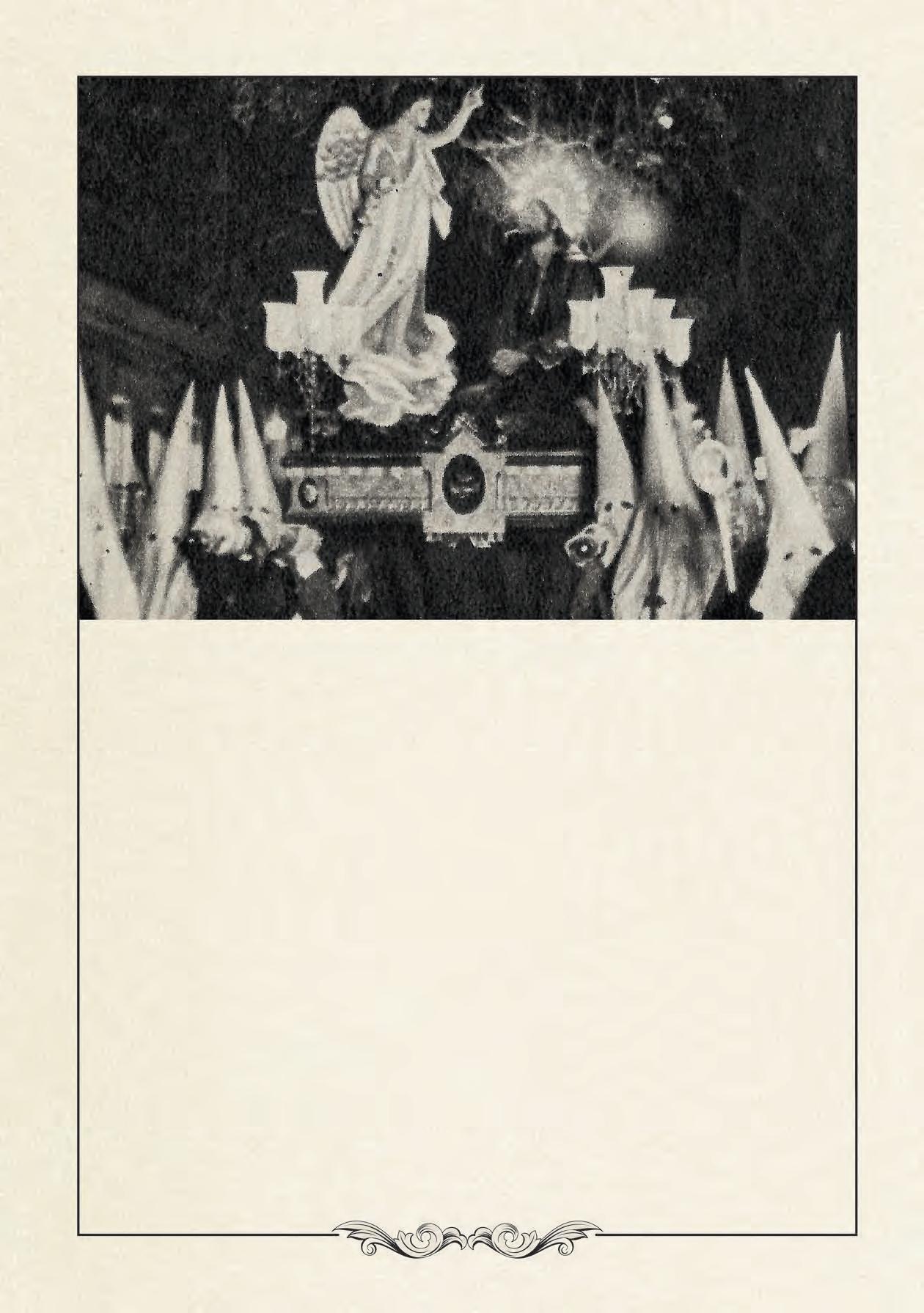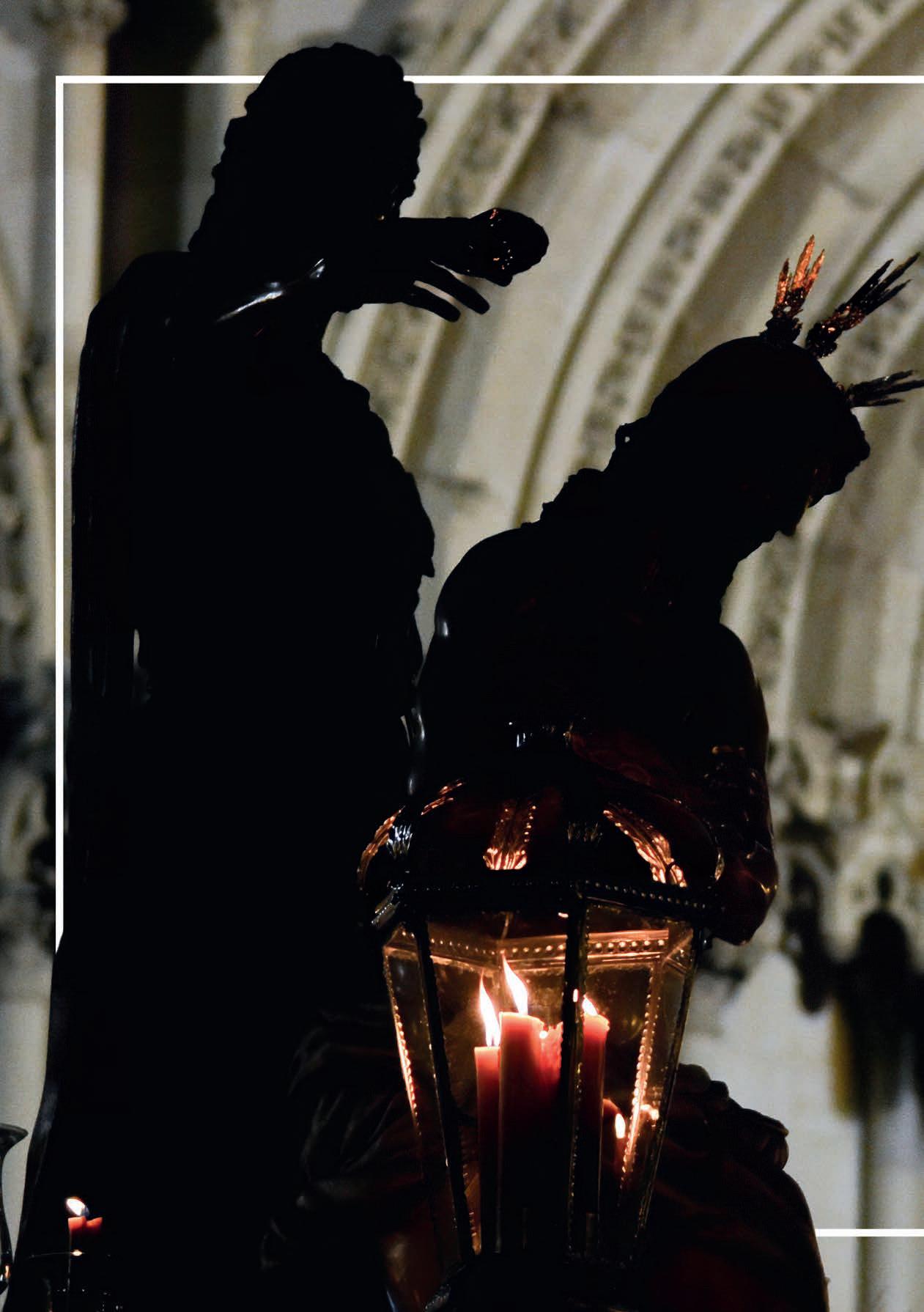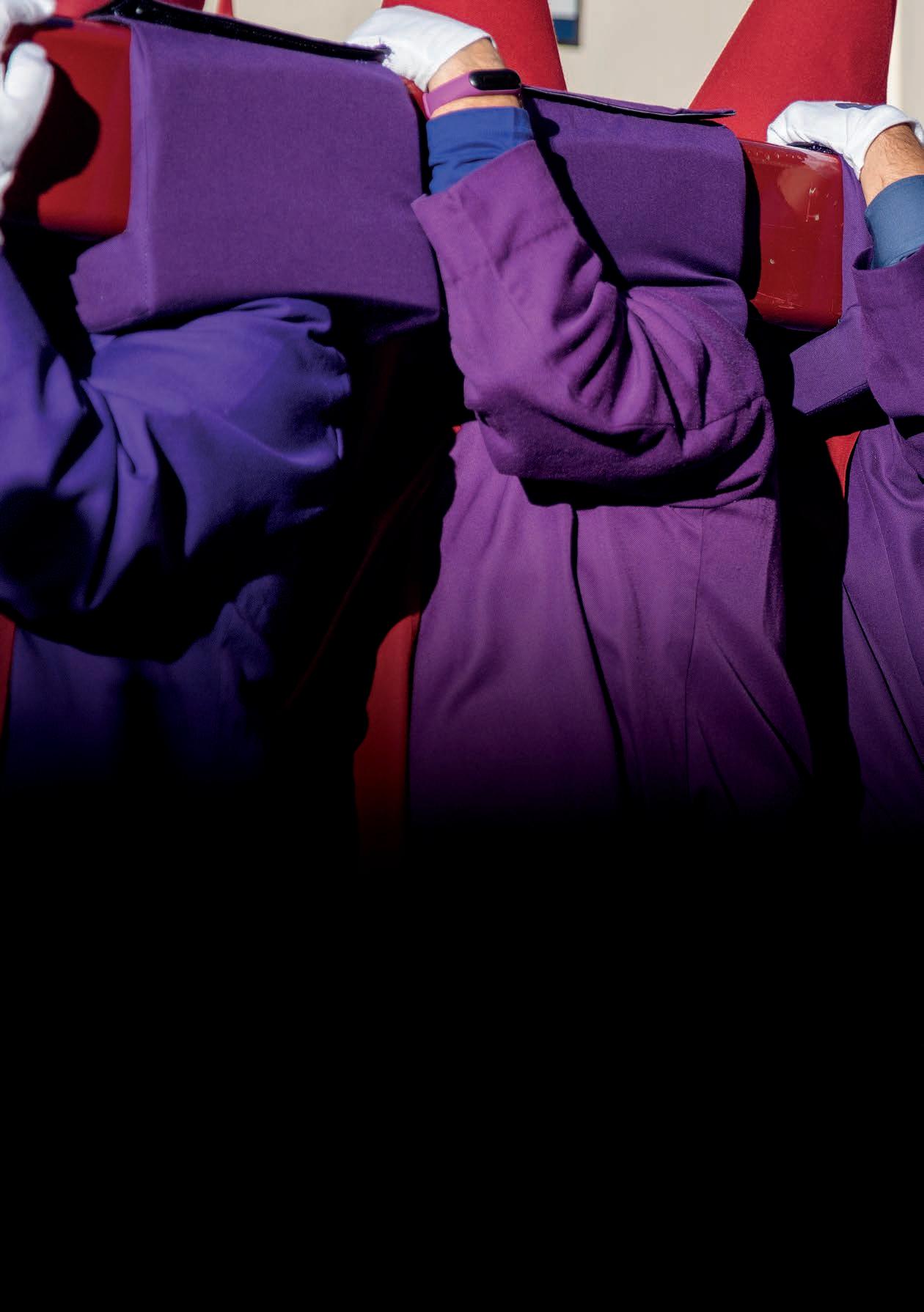 Que esta Semana Santa sea para todos y cada uno de los que participamos en ella, sea desfi lando en las fi las, sea llevando algunos enseres o portando las imágenes, o contemplando el desfi le procesional desde las aceras, un momento para contemplar el Misterio de este Dios que se hace hombre, que da la vida por cada uno de nosotros para traernos la Salvación y renovar nuestra vocación de discípulos que quieren seguir al Maestro haciendo presente su mensaje del Evangelio.