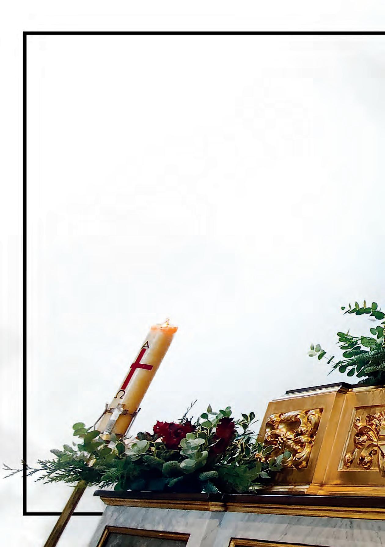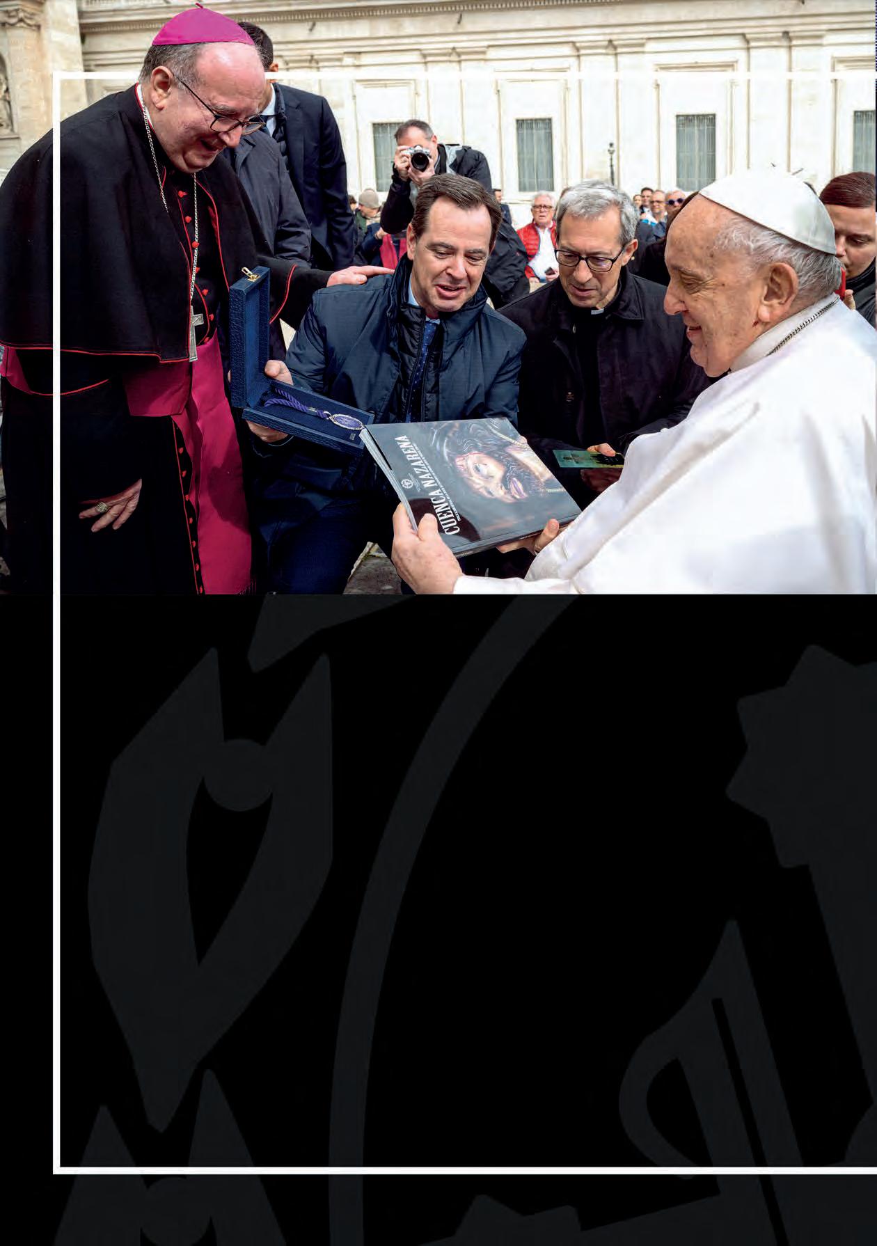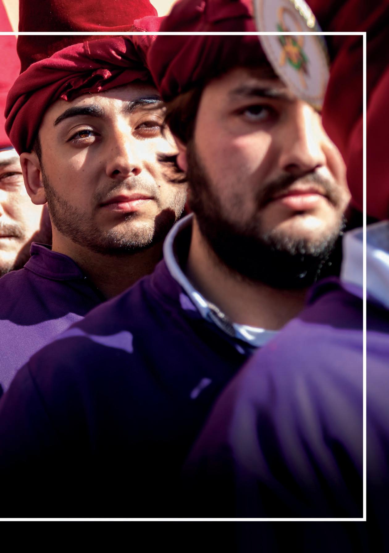 Que esta Semana Santa sea para todos y cada uno de los que participamos en ella, sea desfi lando en las fi las, sea llevando algunos enseres o portando las imágenes, o contemplando el desfi le procesional desde las aceras, un momento para contemplar el Misterio de este Dios que se hace hombre, que da la vida por cada uno de nosotros para traernos la Salvación y renovar nuestra vocación de discípulos que quieren seguir al Maestro haciendo presente su mensaje del Evangelio.