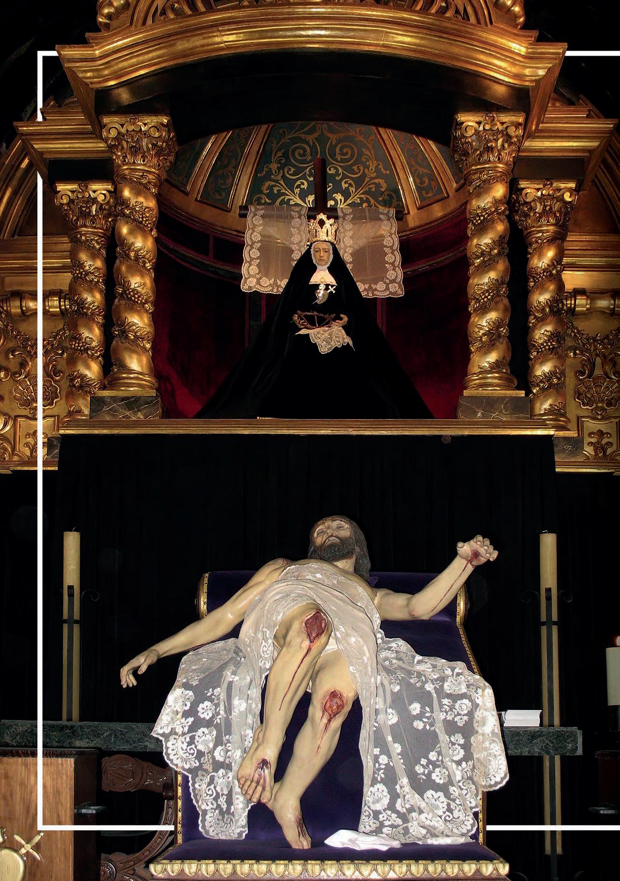 caballeros del Santo Sepulcro, niñas con los emblemas de la pasión y demás elementos integrantes; esta es la procesión más lujosa y delicada y al mismo tiempo la más austera, pues no tiene otro lenitivo para el alma entristecida que el esplendor y la belleza. La afluencia de gente que la contempla y acompaña es imponente; los guardias se ven precisados a contener en todas las bocacalles el tumulto arrollador que quiere formar parte de la triste comitiva, como si se tratara de la conducción de un cadáver a su última morada; pero un cadáver cuya víctima es el Hijo de Dios. Una vez terminado el fúnebre cortejo y bajo el eco del constante miserere nos dirigimos a rendirle culto a la Madre del finado, la Virgen de las Angustias, que en su lejana ermita nos espera enlutada y melancólica.