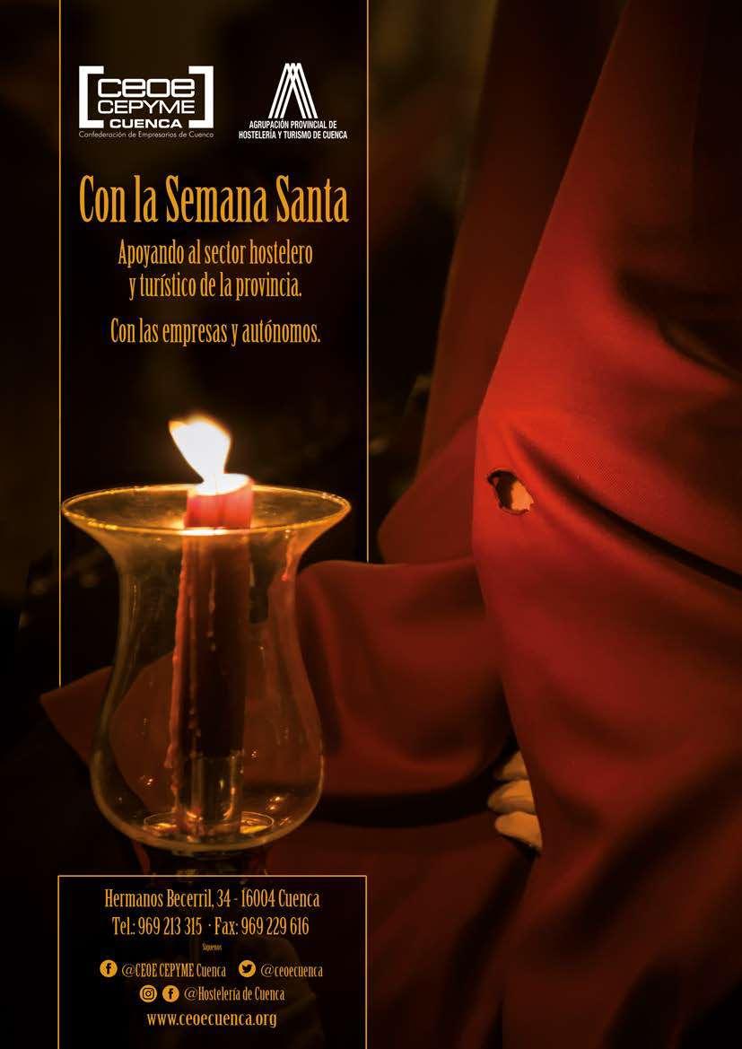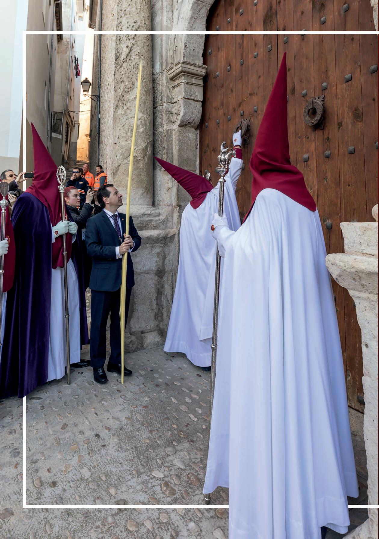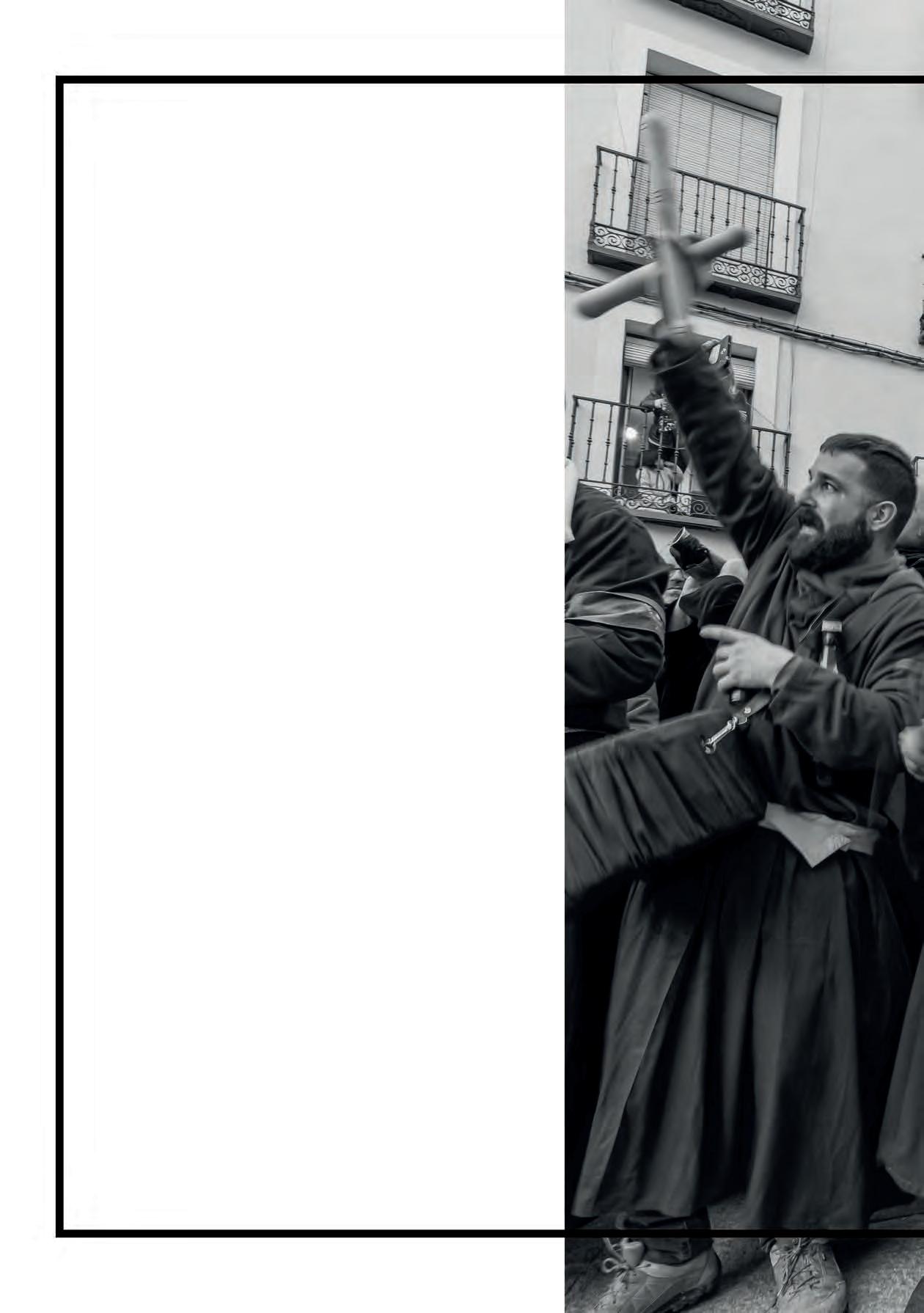 Es cierto que todos los actos que se realizan en torno a la Semana Santa resultan de gran esplendor y cuentan con un masivo seguimiento. Algo que es realmente importante, pues nos proyectan y sirven para potenciar nuestra imagen. Pero es ahora cuando debemos volver a llenar las calles de interminables fi las de nazarenos. La Semana Santa de Cuenca es de todos y la hacemos entre todos. Por ello quiero agradecer a tantos nazarenos anónimos su labor sincera y callada y, cómo no, rendir homenaje a todas las Juntas de Diputación de nuestras Hermandades, por su incansable trabajo en favor del bien común. Como siempre me gusta decir: sois vosotros los sólidos pilares que sustentan la gran Semana Santa de Cuenca.