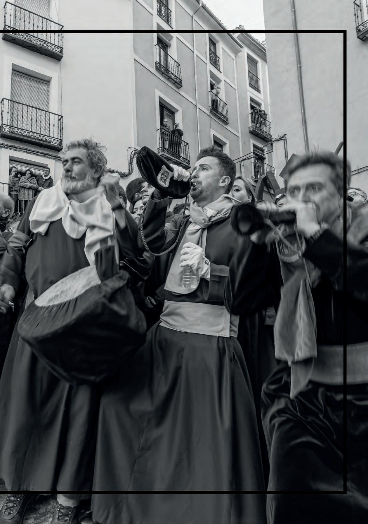 Padre Jesús de El Salvador, tocando el tambor y haciendo sonar el clarín, colaborando en todo momento con la Hermandad y cumpliendo las indicaciones que desde las Turbas de Cuenca se les dan. La segunda campaña se dirige a resaltar las características propias de cada desfi le procesional así como a potenciar nuestras señas de identidad: devoción, sobriedad, silencio y orden procesional.