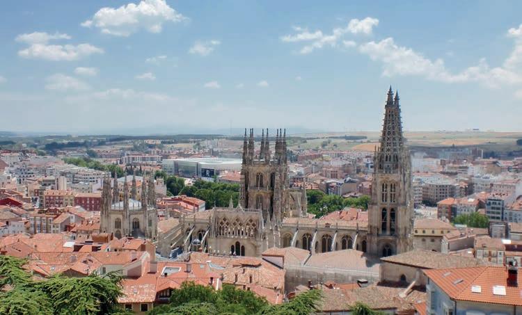Burgos, situada en Castilla y León, es conocida por su rica historia medieval y su ubicación en el Camino de Santiago. Fue la capital del reino unifiado de Castilla y León durante cinco siglos, lo que contribuyó a su desarrollo económico. La ciudad es famosa por su Catedral gótica, declarada Patrimonio de la Humanidad por la UNESCO. Además, Burgos alberga varios edificos históricos y museos, como el Museo de Burgos y la Casa Del Cordón, donde los Reyes Católicos recibieron a Cristóbal Colón. Cerca de la ciudad se encuentra el yacimiento prehistórico de Atapuerca, también Patrimonio de la Humanidad. La ciudad está flaqueada por el Monasterio de Santa María Real de las Huelgas al oeste y la Cartuja de Miraflores al este, ambos con importantes obras de arte.