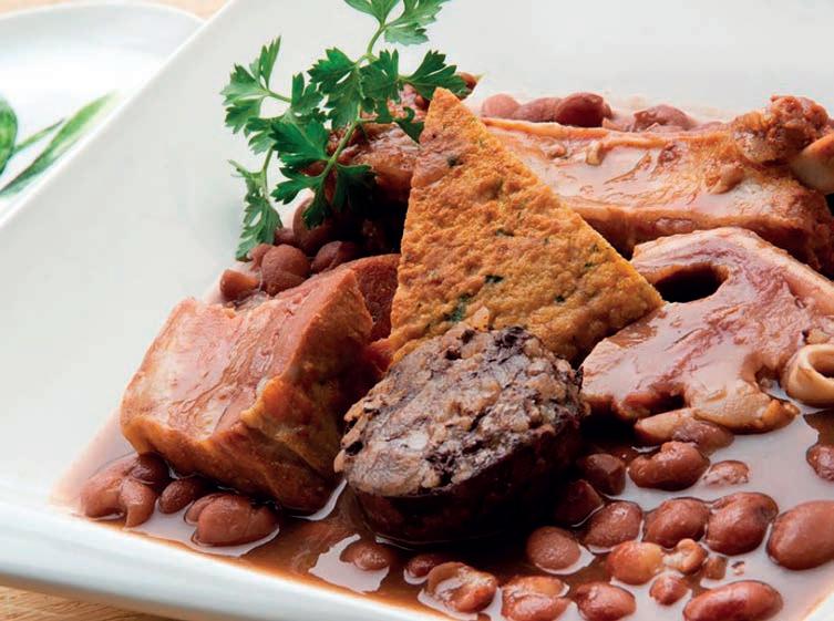 Olla podrida. Se trata de un guiso contundente que combina alubias rojas con ingredientes cárnicos como morcilla de arroz, costilla, chorizo, panceta, oreja y morro de cerdo. Ideal para combatir el frío invernal.