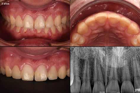 Figura 6: Fotografía clínica y radiografías de seguimiento de los 3 años post traumatismo.