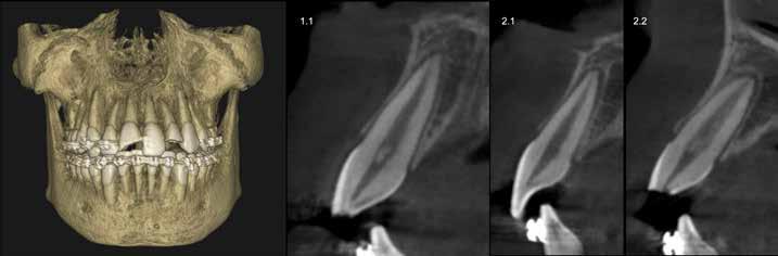 Figura 3: Capturas sagitales del CBCT de los dientes 1.1, 2.1 y 2.2.