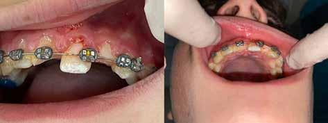 En la exploración clínica se observó ortodoncia fija con varios brackets descementados y el arco desajustado. Los hallazgos incluyeron: