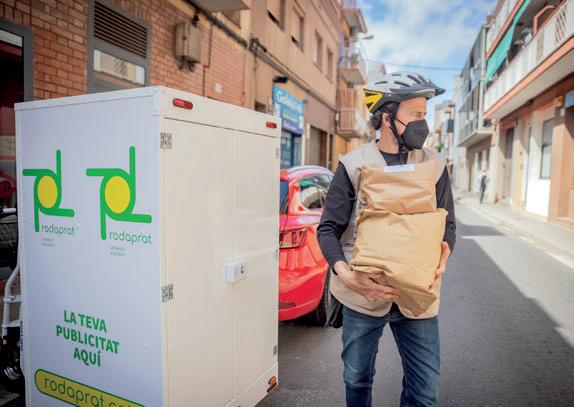 L’empresa local Rodaprat reparteix en bicicleta a domicili les comandes fetes al Mercat Municipal: un exemple ecològic de logística “d’última milla”.