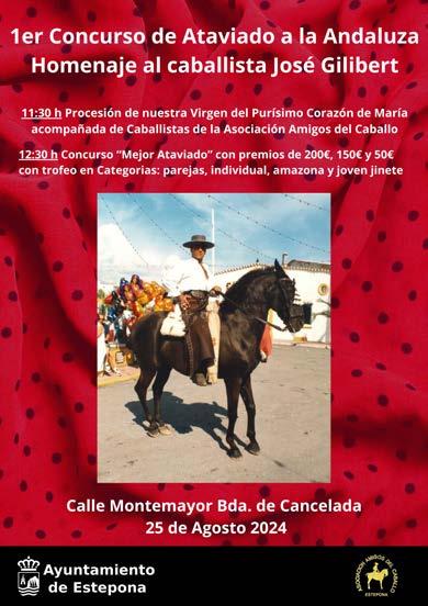 - 21.00H. Pregón acompañado de las Reinas y Damas de la Feria 2024 y actuación de Ana Guerrero. “Solo Flamenco”. Lugar: Plaza José Vázquez Espinosa. Pregón a cargo de D.Rafael Montesinos Rubio nació en Estepona en el año 1951. Aunque ya jubilado, conocido por todos los esteponeros por regentar unos de los mejores restaurantes de la costa del sol ubicado en el extrarradio, posteriormente tuvo su andadura en el año 1987 en la política local y a día de hoy, sigue participando activamente en las actividades culturales y festivas del Municipio.