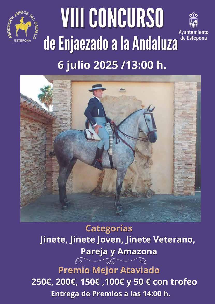 Habrá premios de 250 € y trofeo, 200 € y trofeo, 150 € y trofeo, 100 € y 50 € para cada uno de los cinco caballos y jinetes mejor ataviados en cada categoría: Jinete, Jinete Joven, Jinete Veterano, Pareja y Amazona (Entrega de premios a las 14:00 horas). Colabora la Asociación de Amigos del Caballo de Estepona.