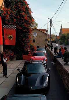 habernos alojado en él en otras ocasiones, y cuyos responsables decoraron con pasión ferrarista, para darnos la bienvenida y en homenaje a nuestros coches.